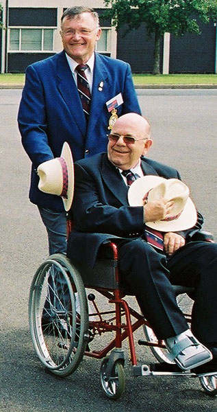 John Bellas and Terry Neal pass the saluting base